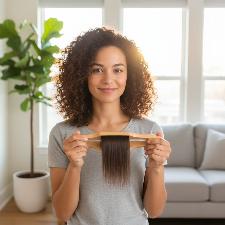 See how our heatless wooden comb transforms frizzy, tangled hair into sleek, shiny locks. From curly to straight, the results speak for themselves.